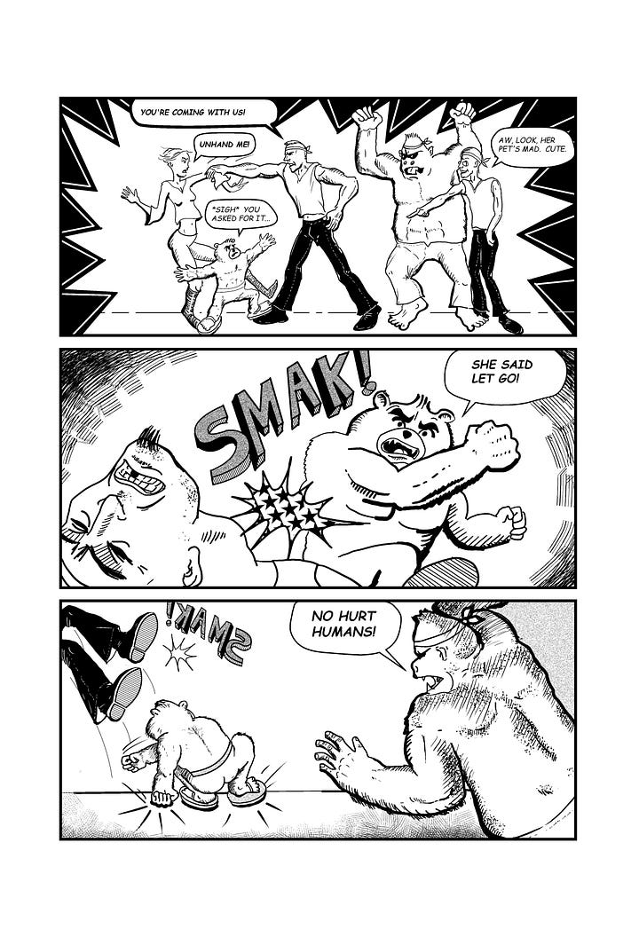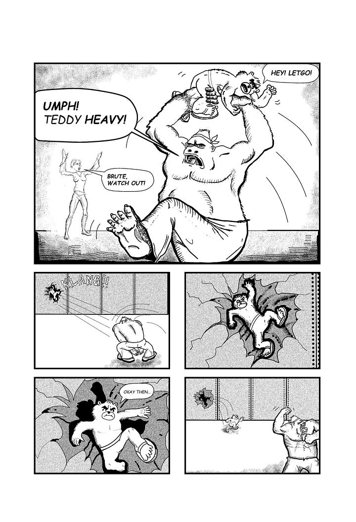 However, we didn’t start with any of those scripts. Owen suggested, wisely, we submit to a fan magazine, YEET!, and see what the reaction to Brute was. Since YEET! was an anthology with 3-4 stories per book, I needed to create a bit-sized story that introduced Brute and Rose, their dynamic, and appeal. Challenge accepted.