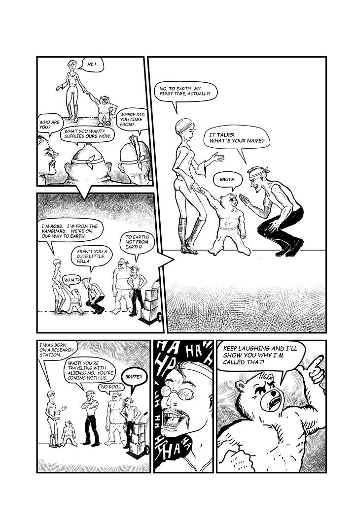 Turns out Owen did have an agenda - he wanted me to help him write his comic he was currently working on. A delightful story aimed at kids and pet owners - and who knows, maybe that’ll happen one day. I said yes, we could do that, but here’s something I was working on, and I pulled out my finished Brute scripts.